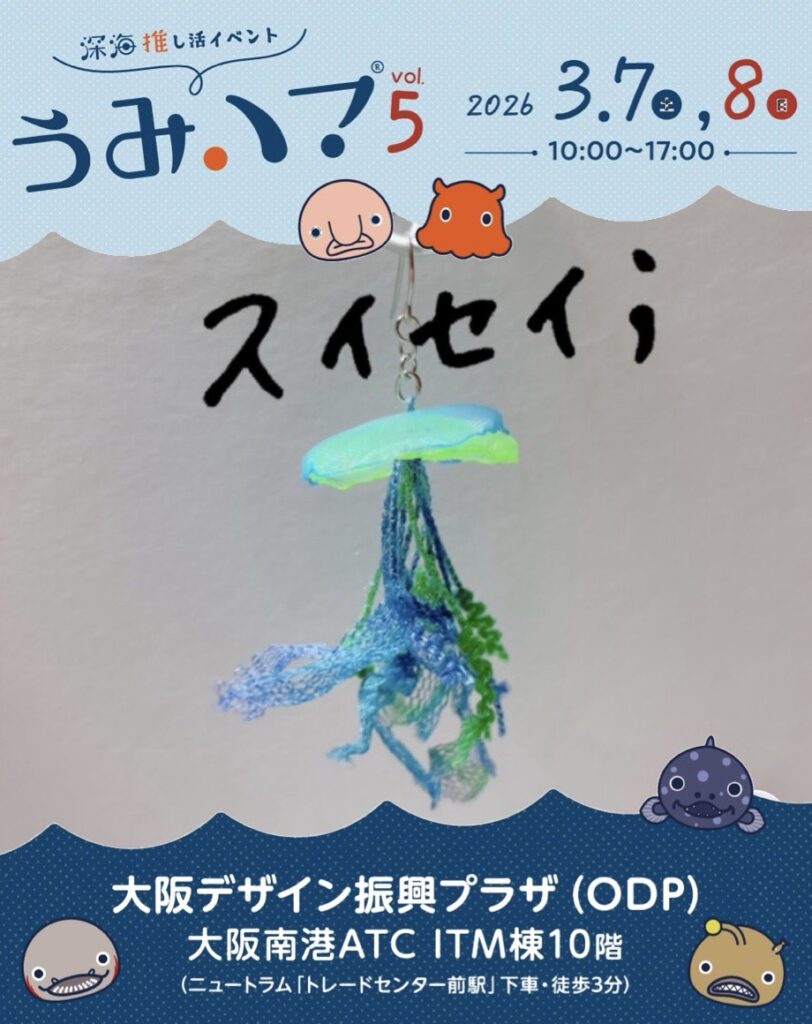 スイセイ; 2026 1/24 うみハマvol.5出展者 2026年1月24日 くらげを中心に海のいきものをアクセサリーにした作品をつくっています。•くらげのピアス•カツオノエボシのピアス•くらげのゆびわ•くらげのおだんごカバー Instagram うみハマvol.5出展者 よかったらシェアしてね! URLをコピーしました! URLをコピーしました! シルクハットサーカス Stroll(ストロール) 関連記事 シープシャンク 2026年1月24日 陶雑貨emian(トウザッカエミアン) 2026年1月24日 tsurishuru水族館(ツリシュルスイゾクカン) 2026年1月24日 Chura Ocean(チュラオーシャン) 2026年1月24日 チナップ 2026年1月24日 chiaki(チアキ) 2026年1月24日 Stroll(ストロール) 2026年1月24日 シルクハットサーカス 2026年1月24日